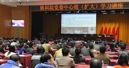 10月22日,院党委举办中心组(扩大)学习讲座,运经所党委副书记、副所长朱克非作《铁路货运组织改革写实调研情况》专题讲座。院党委书记王君历主持。院处以上领导干部,科技创新人才培养行动计划人员,院属单位政工协理、工会主席、党支部书记参加学习。