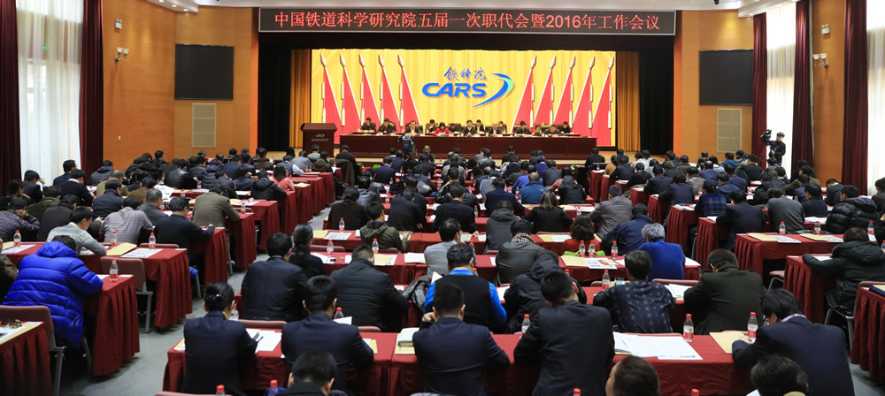 本报讯 2月25日上午,伴随着雄壮的国歌声,中国铁道科学研究院五届一次职代会暨2016年工作会议在铁科会堂隆重开幕。 全院职工代表、院属各单位班子成员、工会主席、团总支(支部)书记、机关各部门负责人、获奖人员代表等共计280余人参加了此次会议。