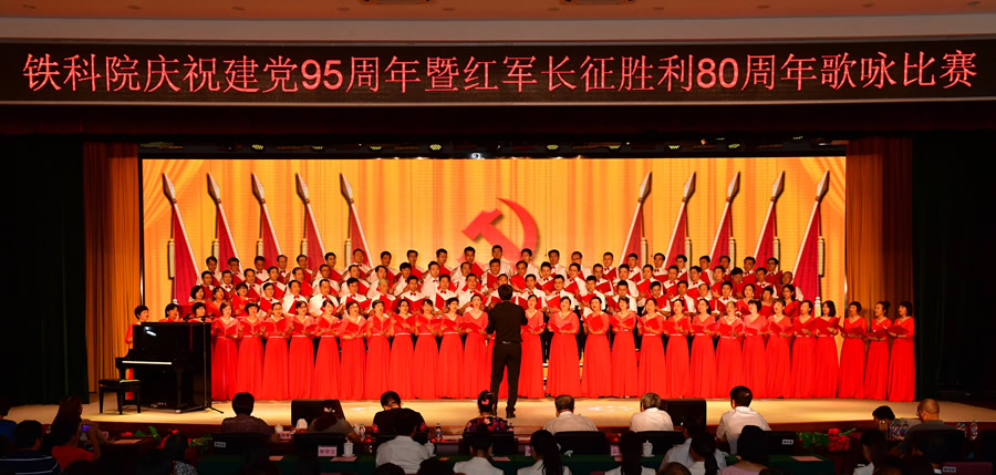 7月1日下午,铁科院举行庆祝建党95周年暨红军长征胜利80周年歌咏比赛。来自院机关、院属各单位、老年大学的19支代表队用昂扬向上、激情澎湃的歌声唱响了爱党、爱国、爱社会主义的时代主旋律。院领导班子成员和职工一道兴致勃勃地在铁科会堂全程观看了歌咏比赛。