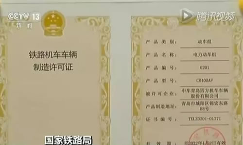 2017年1月3日,中国标准动车组取得国家颁发的型号合格证和制造许可证。