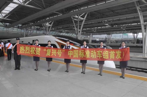 2017年6月26日,“复兴号”中国标准动车组在北京南站和上海虹桥站同时首发。