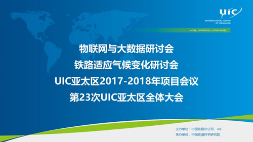 6月19日-6月22日,由中国铁路总公司和国际铁路联盟(以下简称:UIC)共同主办、铁科院承办的第23次UIC亚太地区全体大会及物联网与大数据研讨会、铁路应对和适应气候变化研讨会、2017-2018年度UIC亚太地区项目研讨会在北京成功举办。来自全球15个国家和地区的近200名代表出席了相关会议。铁科院院长叶阳升、党委书记施卫忠带领30余名科技人员参加了此次会议。