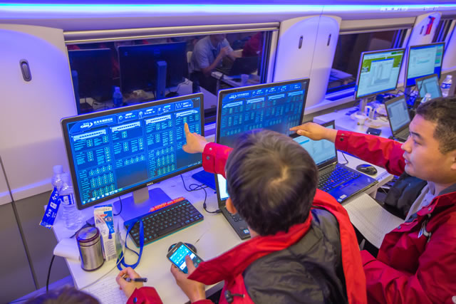 7月2日至7月22日,在铁路总公司的统一组织下,我院组建了由相关专业技术专家和业务骨干组成的检测团队,开展了京沪高铁时速350公里检测试验工作。为了不影响京沪高铁的正常运营,此次试验主要是在夜间天窗点时间段进行。全体参试人员以高昂的斗志、科学严谨的作风,克服了时间紧、任务重和夜间工作等困难,圆满完成了所有试验项目。