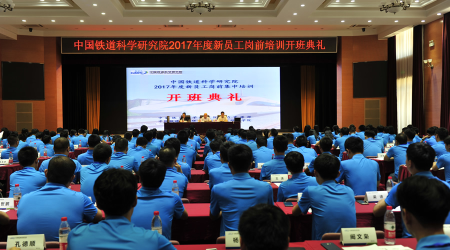 8月7日下午,铁科院2017年度新员工岗前培训开班典礼在铁科会堂举行。院党委书记施卫忠出席开班典礼并作动员讲话。院人资部部长白国庆主持开班典礼,岗前培训的承办单位铁科院研修学院院长朱克非出席典礼。来自16个院属单位的179位新员工,院相关部门、单位负责人参加了开班典礼。