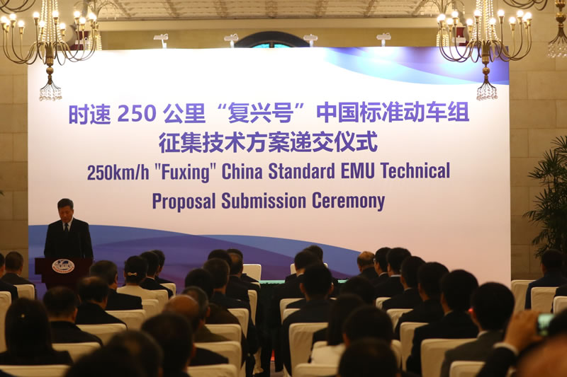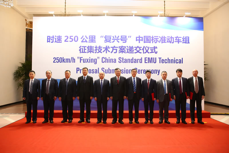据悉,中车青岛四方机车车辆股份有限公司、中车长春轨道客车股份有限公司、中车唐山机车车辆有限公司、青岛四方庞巴迪铁路运输设备有限公司、中车南京浦镇车辆有限公司等动车组列车制造企业,向中国铁路总公司递交了时速250公里中国标准动车组应征技术方案。