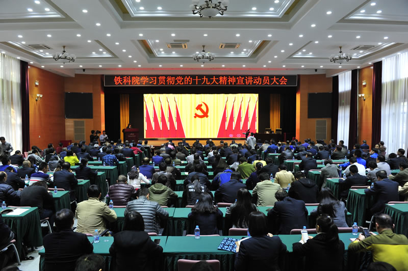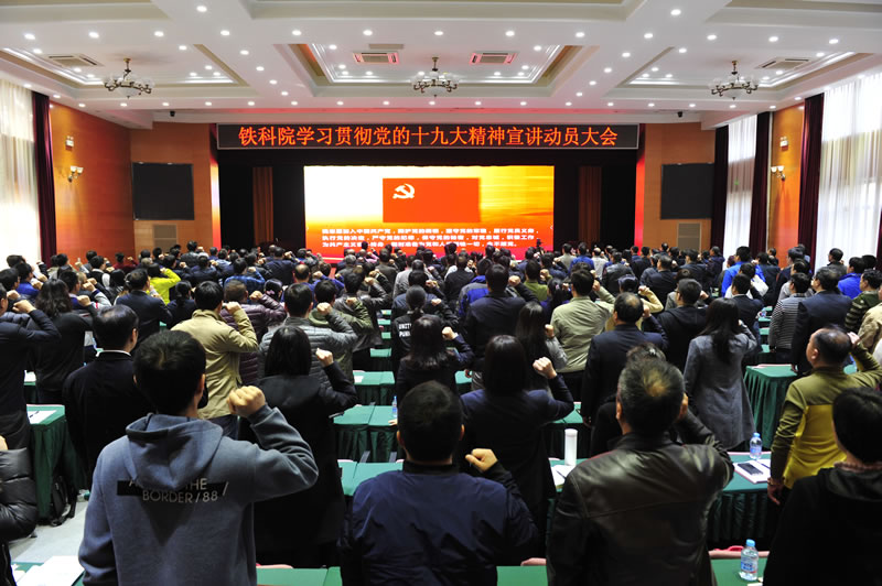 施卫忠号召全院各级党组织、广大党员、干部职工一定要始终在思想上政治上行动上同以习近平同志为核心的党中央保持高度一致,按照总公司党组的统一部署,迅速兴起学习宣传贯彻十九大精神的热潮,切实把全院干部群众的思想和认识统一到十九大精神上来,把全院干部职工的智慧和力量凝聚到十九大确定的目标任务上来,不忘初心、牢记使命,真抓实干、锐意进取,充分发挥铁路科技创新的骨干、尖兵和平台作用,自觉投身到夺取新时代中国特色社会主义伟大胜利的历史进程中来。