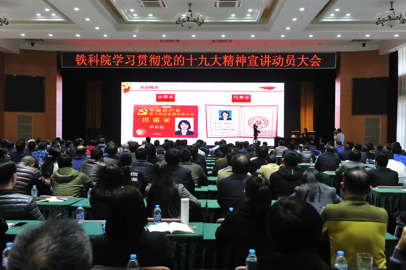 为深入学习宣传贯彻党的十九大精神,按照总公司党组部署安排,2017年11月2日下午,铁科院举办学习贯彻党的十九大精神宣讲动员大会。会议邀请党的十九大代表、院电子所副总工程师兼12306技术部主任、研究员单杏花作党的十九大精神宣讲报告。院领导班子成员出席会议,院属各单位班子成员、政工协理、党支部书记、院机关全体人员270余人参加会议。