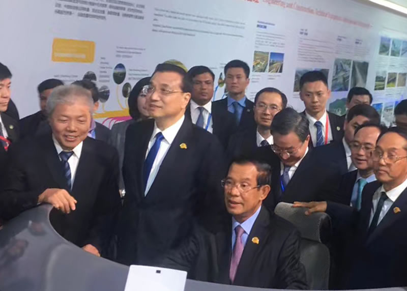 10日下午,国务院总理李克强、柬埔寨首相洪森、老挝总理通伦、泰国总理巴育、越南总理阮春福、缅甸副总统敏瑞共同来到中国铁路展区,总公司科信部主任赵国堂和我院副院长罗庆中在展区迎候。赵国堂主任向各位贵宾介绍了中国铁路路网规模及发展规划、“复兴号”动车组主要技术特点及中国铁路国际合作与交流情况,并邀请贵宾体验高铁模拟驾驶设备。李克强总理和各国领导人听取介绍后,兴致勃勃地坐进模拟驾驶舱,亲身感受时速350公里“复兴号”驾驶舱的装备配置和驾驶运行情况。李克强总理表示,基础设施互联互通是澜湄合作的优先领域之一,目前中老、中泰铁路已先后动工,成为两国同中方开展产能合作的旗舰项目。现在,高铁已成为中国装备的一张“黄金名片”,中方愿发挥自身技术和经验优势,对接地区国家发展需求,提升本地区基础设施和互联互通水平,促进各国经济发展和民生改善进入“高铁速度”。参观完毕,李克强总理向各国领导人赠送了“复兴号”动车组模型。