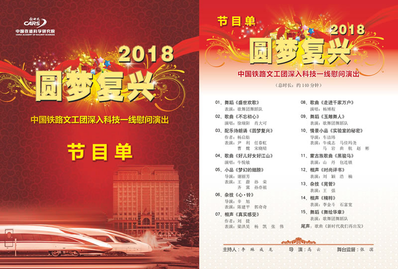 本场演出活动以“圆梦复兴”为主题,由我院与中国铁路文工团共同策划、创作。
