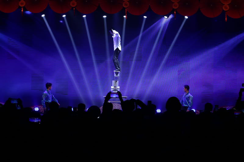 杂技表演《心·铃》让人眼花缭乱,高难度的动作引得场下观众连声喝彩。