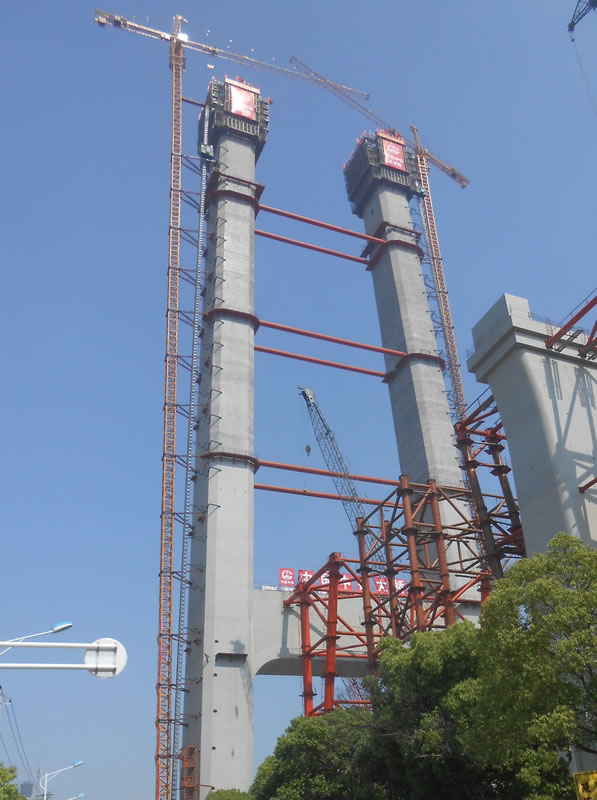 南岸主塔南主塔(4#墩)高191m,采用门式框架结构,设上、下横梁,C55混凝土共36187m3。