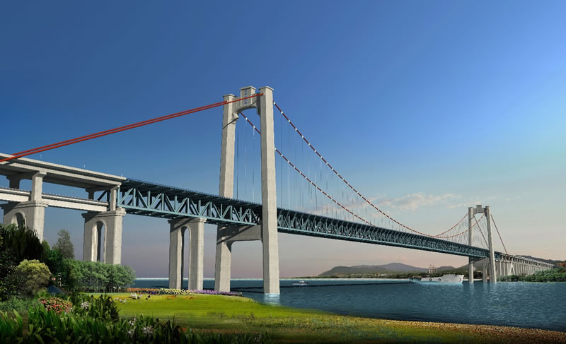 五峰山桥不仅是我国首座千米级公铁两用悬索桥,也是世界首座高速铁路悬索桥。该桥是新建连云港至镇江铁路的控制性工程,北岸位于镇江市丹徒区高桥镇,南岸位于镇江新区,桥梁总长6408.909m,跨江主桥为双塔连续钢桁梁悬索桥。