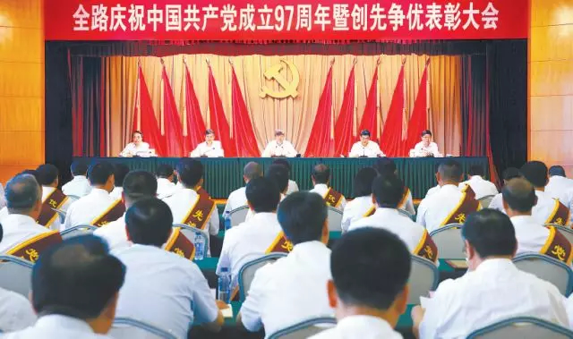 6月28日上午,中共中国铁路总公司党组召开庆祝中国共产党成立97周年暨创先争优表彰大会。总公司党组书记、总经理陆东福出席会议并讲话,要求全路各级党组织和广大党员深入学习贯彻习近平新时代中国特色社会主义思想和党的十九大精神,落实坚持党的领导、加强党的建设、全面从严治党各项要求,充分发挥党委的领导作用、基层党组织的战斗堡垒作用和广大党员的先锋模范作用,为决胜全面建成小康社会、建设社会主义现代化国家作出新的贡献。