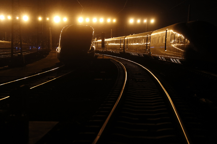 深夜,一辆“复兴号”驶入北京南动车运用所进行检修维护(刘关关 摄)