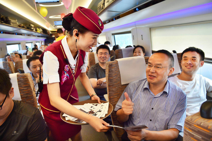 据悉,铁路部门还以“复兴号”动车组投入运营为契机,持续优化运输服务供给,陆续推出了互联网订餐、车站智能导航、中转旅客“接续换乘”、微信支付、动车组列车“自主选座”、常旅客等一系列服务新举措。同时,京沪高铁率先推出全国最快的“极速达”高铁快运产品,实现北京至上海10小时“门到门”送达客户,打造了中国最快的快运产品。