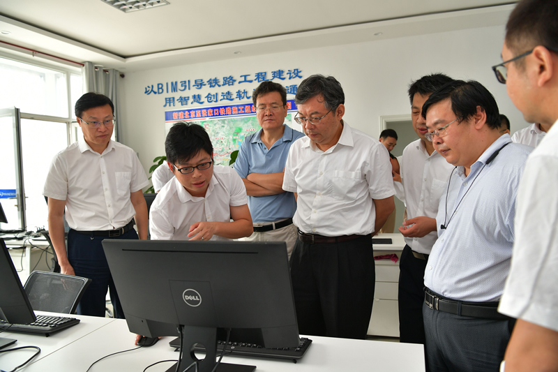 在现场,党委书记周黎认真听取了项目部负责人对京张高铁BIM项目部成立以来的工作情况汇报。周黎充分肯定了项目部取得的阶段性工作成果,并就项目部建设和BIM事业部在人才队伍建设、产品方向、市场开拓、合作经营、企业改制等方面提出了明确要求。在调研中,周黎谈到, BIM技术作为智能建造的核心技术,是未来铁路及轨道交通工程建设管理和基础设施运维信息化的必然趋势,面对应用和市场的大爆发,集团公司参与BIM技术研发和工程应用的年轻一代,要坚定信心、抓住机遇,在探索铁路BIM技术落地上要统筹规划、坚持不懈,要始终不忘初心、牢记使命,为未来中国高铁智能建造和智能运维插上腾飞的翅膀,不断开创中国高铁科技创新的新篇章!