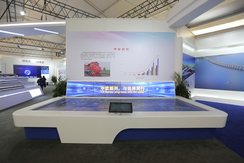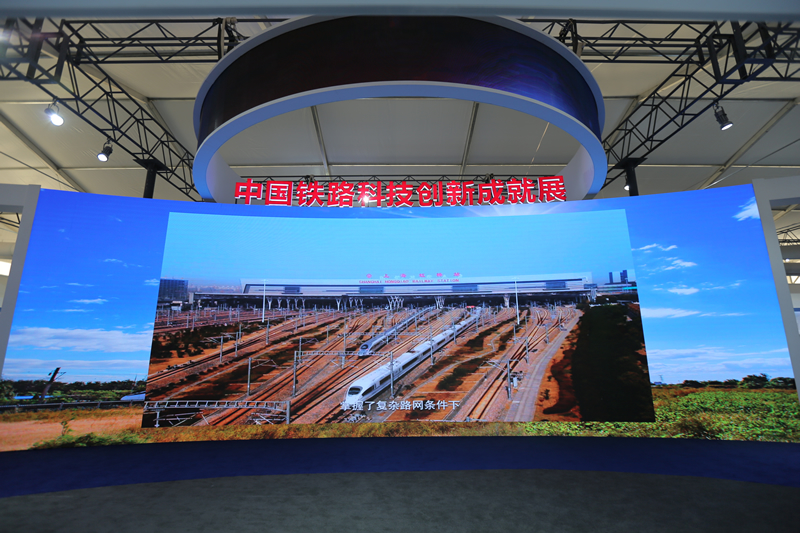 进入室内展区,《中国速度领跑世界》宣传片在大屏幕循环播放,全面反映了在以习近平同志为核心的党中央坚强领导下,铁路事业取得的历史性成就。一幅幅图解、一个个模型、一段段视频,从不同角度生动展示了中国铁路技术创新成果,从铁路工程建设、技术装备,到运营管理、安全风险防控,再到信息化、智能化技术,详细解读了铁路各个领域的最新技术成果,集中反映了党的十八大以来铁路科技创新取得的巨大成就,展望了中国铁路未来路网规模和质量、技术装备和创新能力、运输安全和经营管理水平达到世界领先的美好愿景。