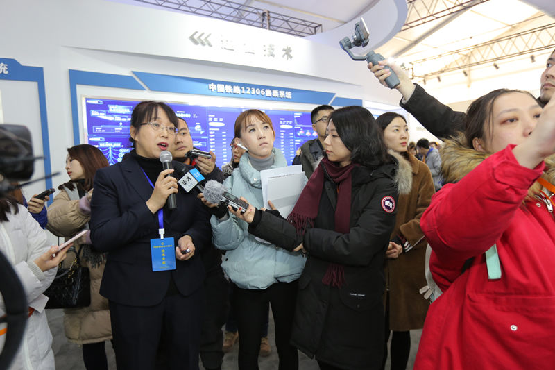 铁科院集团公司电子所副总工程师兼12306技术部主任单杏花向记者介绍铁路运营技术创新情况