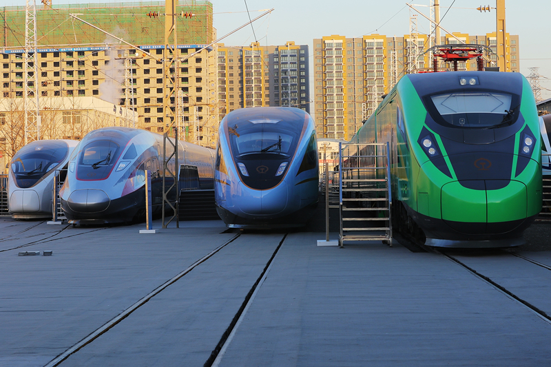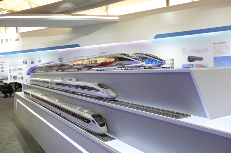 在室外展区,一列列先进的高铁动车组、检测车和大功率机车一字排开、气势恢宏,彰显了大国重器的崭新形象。这些铁路装备均由我国自主研发设计,技术性能达到世界先进水平。排在前列的17辆编组超长版时速350公里复兴号动车组和时速160公里动力集中复兴号动车组格外引人注目,这两款动车组经过一系列试验验证,完全符合设计规范,具备上线运营条件,即将投入使用。