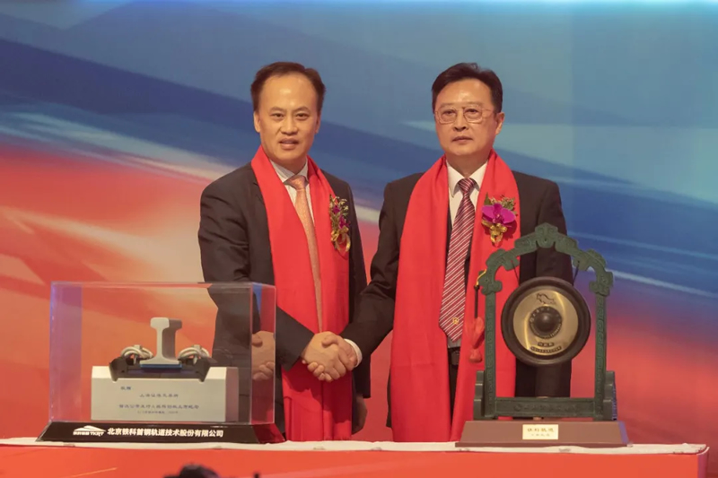 9时30分,国铁集团党组成员、副总经理黄民和铁科院集团公司党委书记、董事长周黎共同为铁科轨道鸣锣开市,“国铁科创板第一股”成功登陆A股市场。