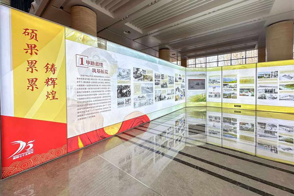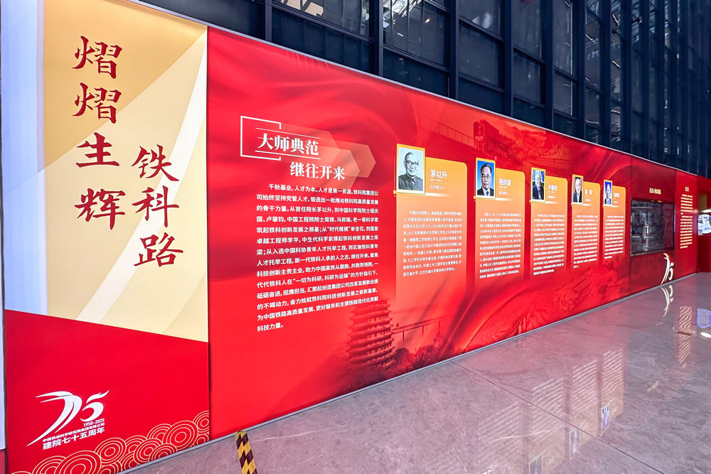 “建院75周年科技创新成就展”集中展示建院以来取得的标志性创新成果和涌现的代表性专家团队,共有四个篇章和一组实物展,全方位回顾从1950年到2025年铁科院走过的光辉历程。