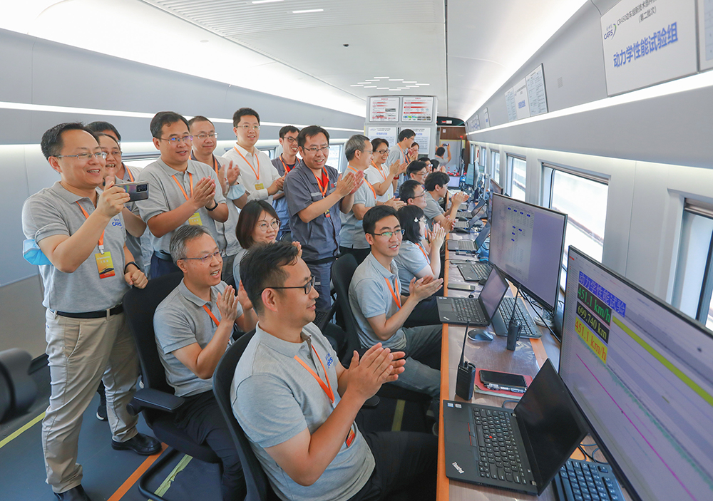 “从CR400到CR450,我们不仅要造更快的列车,更要培养更多优秀的人才。”铁科院集团公司党委副书记、总经理李学峰表示,在团队中,既有刚入职的年轻人,也有长期奋战在科研一线的老同志。在“老中青”三代科研人员的努力下,目前CR450动车组样车已经下线,团队正在紧锣密鼓地进行后续试验验证和运用考核工作。