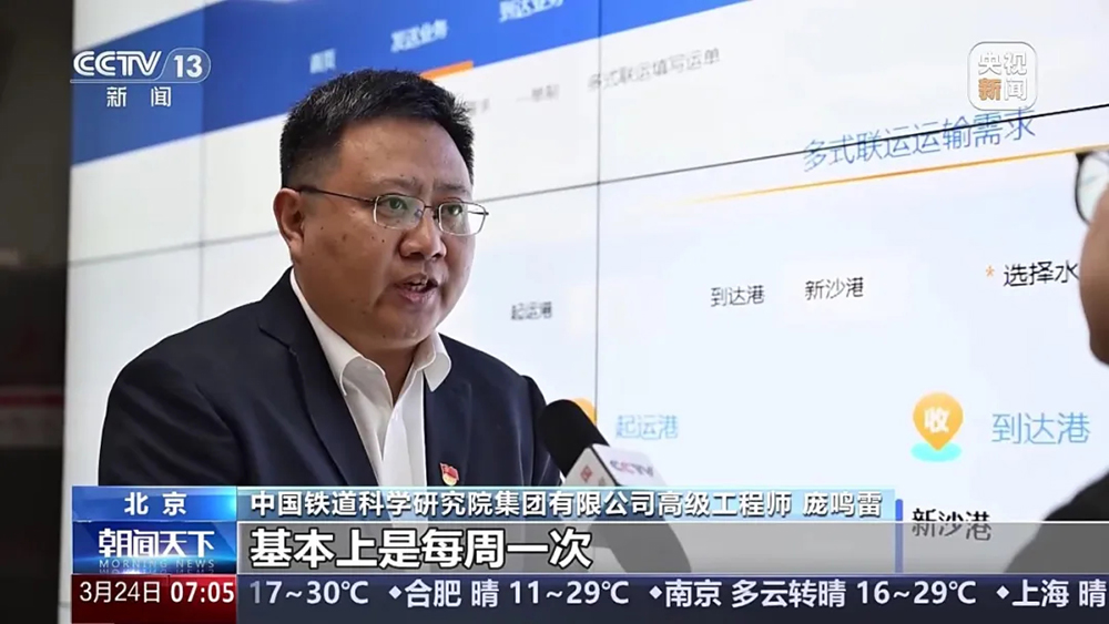 中铁集装箱运输有限责任公司多式联运部部长 冯轶斌:比如说我们有一个货物品名叫“杯子”,可能在这个船公司的系统里面叫“水杯”。在我们的系统里面,我们就要把这个“杯子”翻译成船公司的“水杯”,然后推到它的系统里面,我们把它叫做“映射”或者“翻译”。