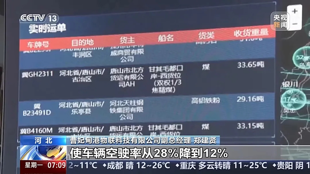 曹妃甸港物联科技有限公司副总经理 郑建贤:数字孪生港口系统就像一个虚拟的“港口大脑”,通过实时数据采集、三维建模和智能分析,动态生成最优路径,能使车辆空驶率从28%降到12%。