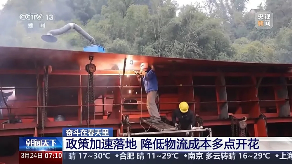 四川将加快建设立体化物流体系写入政府工作报告,着力发展“公铁水空”多式联运。在泸州,两艘1100吨级增程式新能源货轮正在紧张地建造中,预计4月完工交付。这两艘新能源货轮将投入“广安—重庆”集装箱航线运营,助力成渝双城经济圈的公水联运。