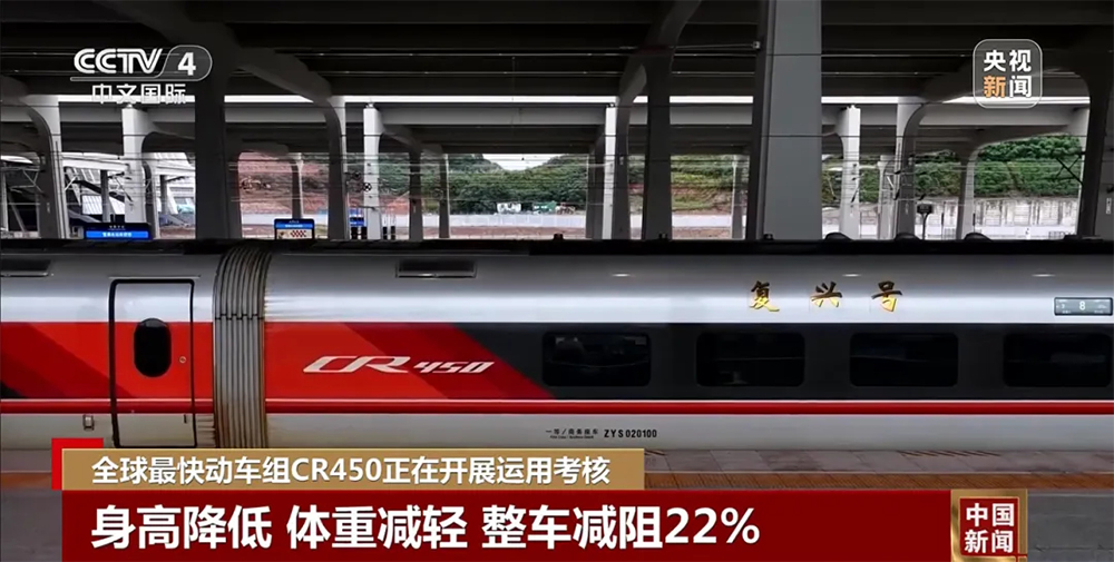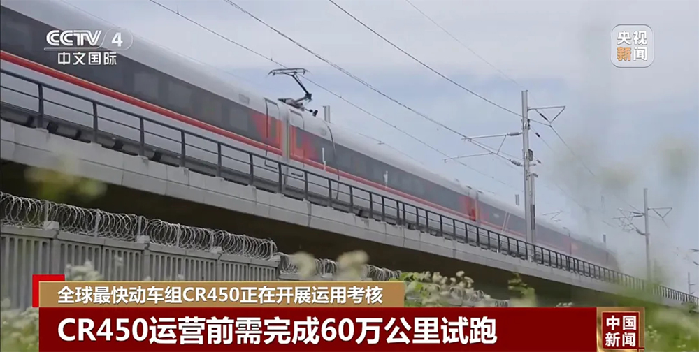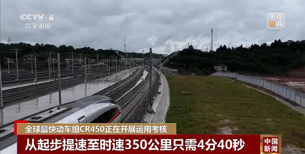 被称作“全球最快高铁”的CR450动车组样车去年底公布后,目前正在不同速度、不同场景中进行多项试验。试验期间,CR450动车组跑出了动车组单列时速453公里、相对交会时速896公里的最新纪录。目前,CR450动车组正在沪渝蓉高铁开展运用考核。来看总台央视记者发回的报道↓