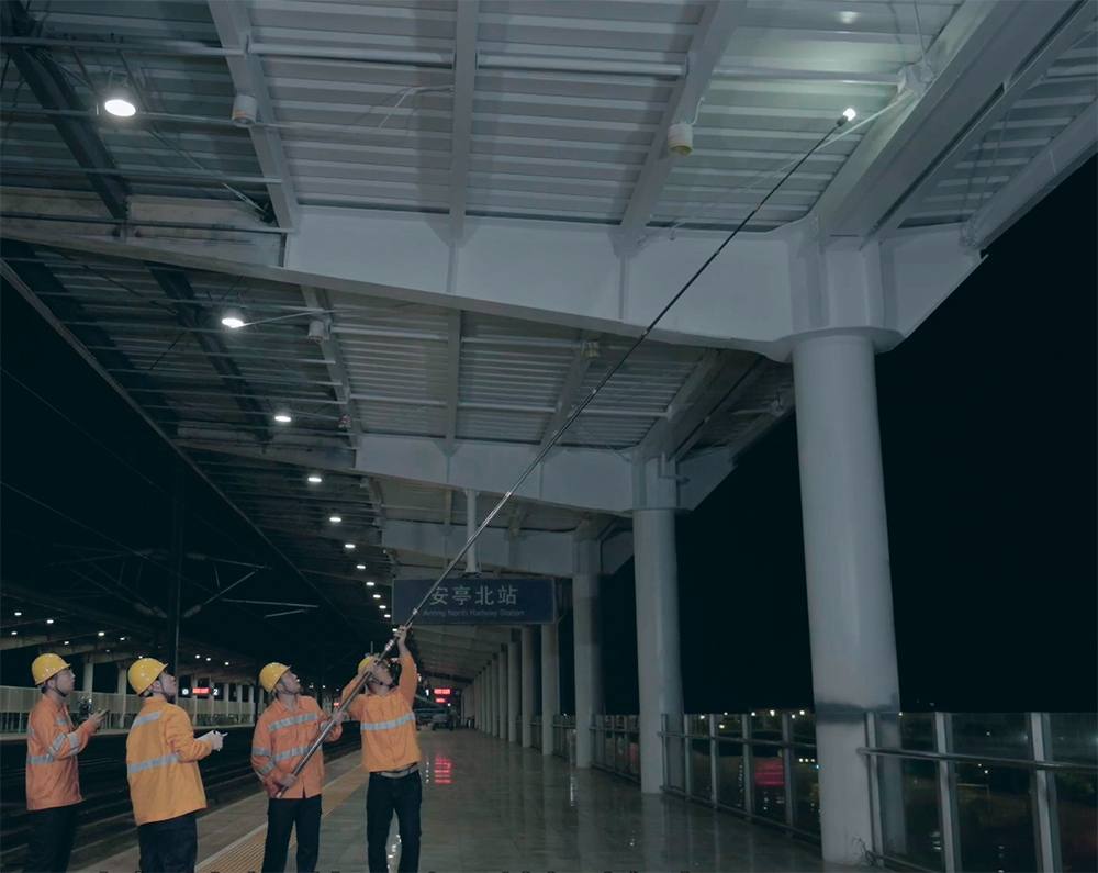 高空检测伸缩摄像杆GKJC-0003是铁科院集团公司铁建所最新研发的高空狭小空间内检测设备。该设备搭载高清云台相机,可实现最高4K 分辨率的高清图片和视频拍摄。相机具有防抖云台,能够有效避免长杆作业时的晃动影响,同时云台可多角度旋转,解决了有些死角位置固定相机难以拍摄的问题。相机采用无线传输,避免了长走线的麻烦。同时设备配备高亮度补光灯,能够在光线不足的空间内正常拍摄。大容量电池能够使设备至少续航6 h。