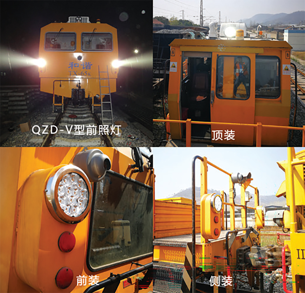 QZD-V 型前照灯为新型LED 前照灯,广泛适用于各型大型养路机械车辆照明。其采用多点LED 暖白光光源、高导热传导散热、光学透镜聚光等新技术,光线质量高、结构紧凑、安装空间小、使用方便,可适应前装、顶装、侧装等多种安装方式。外露部分全部为有色金属材质(不锈钢或铝合金材料),有较好的的耐候性。QZD-V 在既有型号前照灯的基础上进行了多项技术优化,外形紧凑美观,安装尺寸、电源连线等与既有前照灯相同,可实现无缝互换,广泛用于DCL-32、CDC-16、DWL-48、WD320、QS650、DPZ440 等各种大型养路机械车型,亮度更高、寿命更长、耗电更少、安全系数更高。其所需安装空间减小,结构更简单,具有更强的密封性、抗震性和可靠性。自投入使用以来,深受主机厂和各铁路局集团公司用户的好评。