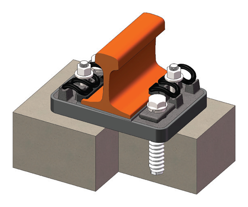 WJ-18B 型减振扣件适用于铺设无挡肩混凝土枕无砟轨道,最小曲线半径不小于400 m,最大轴重14 t,锚固螺栓钉孔距为230 mm×110 mm,属于中等减振扣件,减振效果为5~8 dB。
