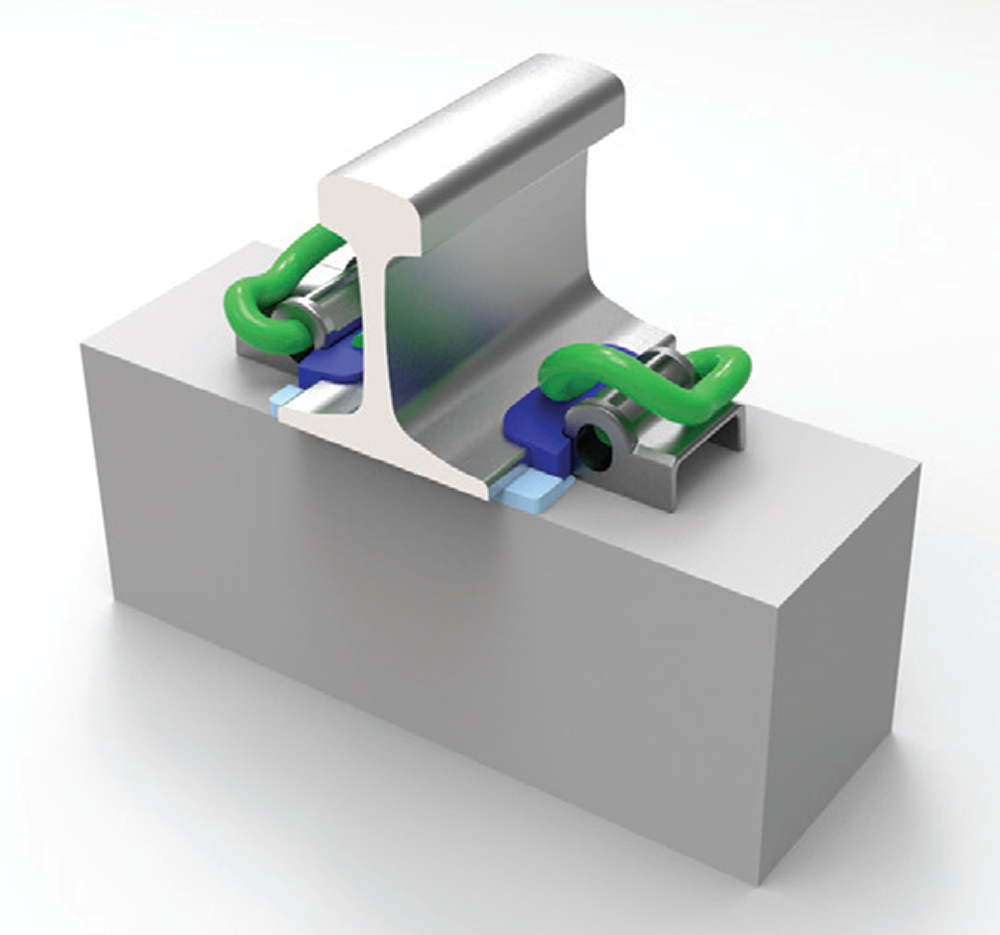 弹条Ⅳ型扣件适用于速度250 ~ 350 km/h、Ⅲb型无挡肩预应力混凝土轨枕有砟轨道,靠预埋铁座承受轮轨横向力,属于弹性不分开式扣件,该扣件是在原弹条Ⅲ型扣件系统的基础上经多年深入研究和大量试验优化改进而成。