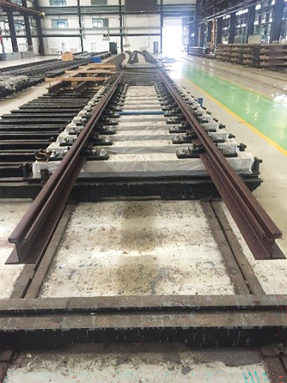 本伸缩调节器用于城市轨道交通有轨电车60R2 钢轨、标准轨距无砟轨道地段,列车轴重15 t,允许列车最高通过速度140 km/h,调节器设计图号为研线1515-300。该调节器具有以下结构特点:(1)调节器基本轨始端加长,基本轨跨越梁缝并延伸至引桥上;(2)调节器尖轨尖至梁缝范围配置可滑动扣件;(3)调节器设计伸缩量±300 mm,在桥上可单独铺设,也可与梁端伸缩装置同时铺设;(4)调节器全长为13 400 mm。