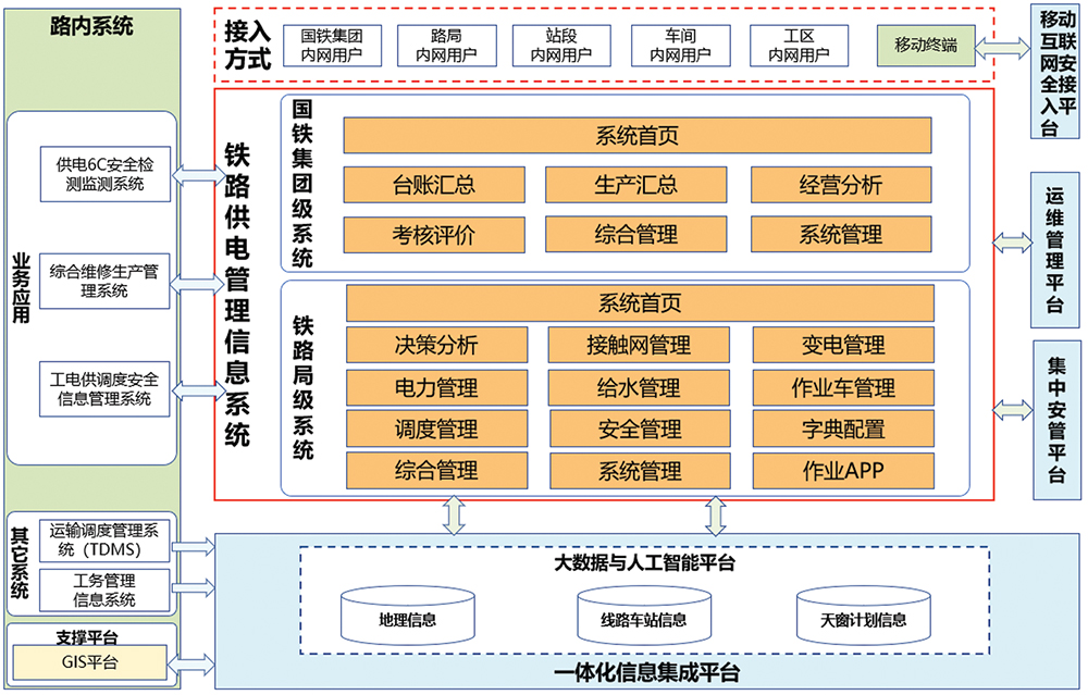 供电管理信息系统是为供电专业生产管理提供综合信息化管理的平台,系统建设以“优化顶层设计,加强数据规范,支撑修程修制”为原则,以设备管理为基础,围绕“设备全寿命周期管理”和“生产全过程管控”,建立全路统一的供电专业信息化平台暨铁路供电管理信息系统,逐步推动铁路供电专业规范化、数字化、智能化管理,支撑安规修规标准高效执行、设备全寿命周期管理、生产流程规范、信息全面共享,科学辅助维修生产决策。
