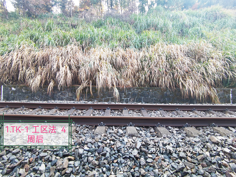 铁路专用TKEI 环保型植被抑制剂是有效防控铁路沿线植被不利影响的环保型植被抑制剂,补充了抑制目前铁路难以杀除的抗性植被。通过建立药物残留检测方法模型,实现了通过植被环保型抑制剂控制铁路沿线不利植被影响的目的。TKEI 环保型植被抑制剂助力铁路相关部门解决了铁路沿线综合治理不利植被的难题,包括抑制剂的植被抑制效果、对沿线作物的安全性、对水生生物的安全性,以及药剂的速效性或持效性等难题,是目前全路最新一代环保型植被抑制剂。