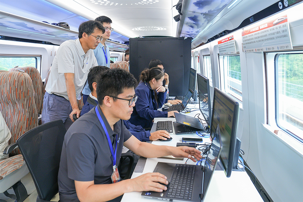 相比老同事口中当年试验人员“摸着石头过河”的艰辛,陈璨感受更深的是试验体系及工作模式的进步,“与2022年开展CR450动车组研制技术条件参数试验时相比,车上的测试点至少增加了10倍,但在搭建这套综合测试系统时,我们把能规整的线缆都融合在一起,设备布置甚至看起来比上线运营的动车组还要井然有序”。变化更大的,是工作节奏的加快。如今,他们在车上就能完成当天的数据分析,形成数据趋势对比分析报告,以便指导次日的试验。“以前是按照周或月为节点形成分析报告,当天只简要汇报试验数据是否正常。”陈璨说。
