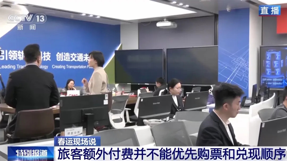 铁科院电子所数智客运研究室 赵千谊:此刻我们看到,身后大屏幕上不断跳动的数字,代表今天实时的售票数。总体上来看,今天预计发售的车票数量和昨天相比有回落,因为今天发售是除夕当天的车票,旅客的出行需求会有所减少。