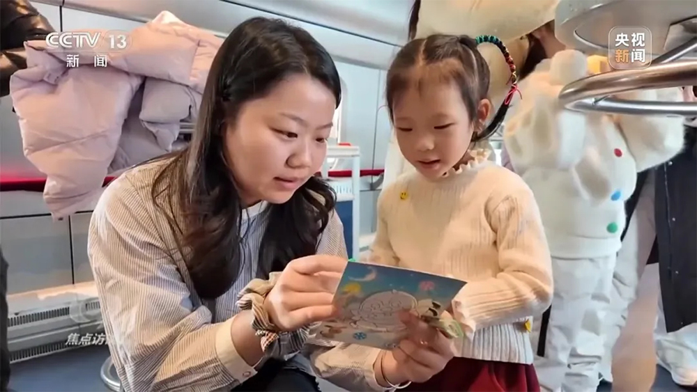 记者在乘坐动车返回哈尔滨时,又发现了不少暖心的服务细节。比如,列车专门设置了儿童游乐区,乘务员变身老师,带着孩子做游戏、做手工,让旅客旅途更轻松。