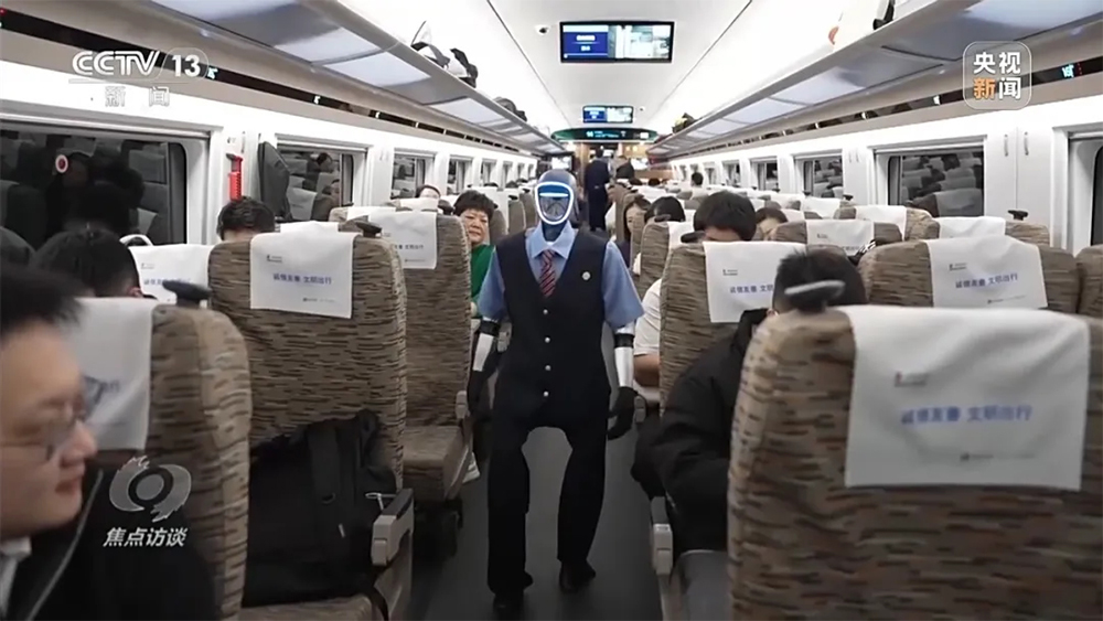 科技赋能助力春运“走得好”,在提升旅客出行体验的同时,也让服务更高效。今年春运,在杭州东站开往北京南站的 “西子号” 高铁上,一位身着铁路制服的特殊“编外乘务员”——记忆型机器人“福兴”上岗了。