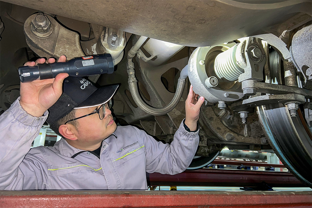 一列车有16个转向架、32个高度阀,核对完需半蹲仰头近两小时。膝盖麻了换姿势,脖子僵了揉两下继续。凌晨4点,人最困倦,但普查人员深知任务紧迫重要,彼此鼓励,争分夺秒完成工作。