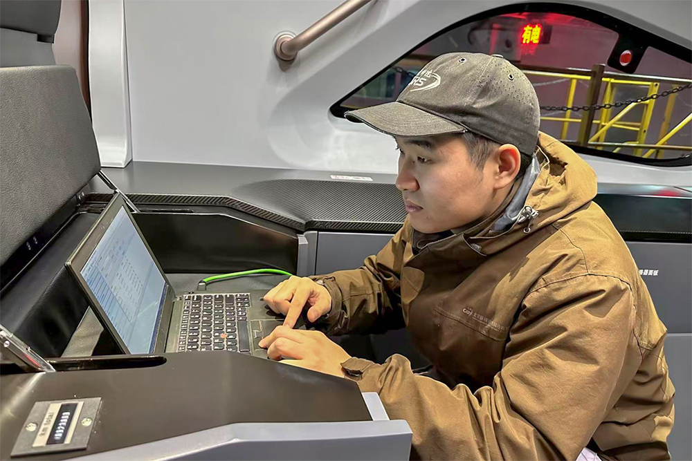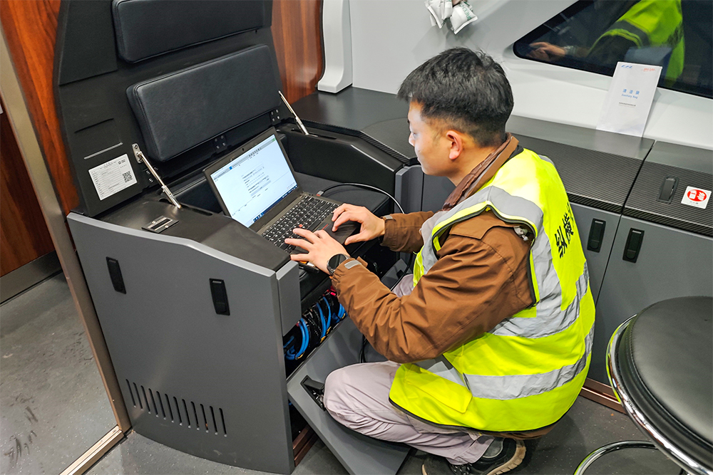 从清晨到深夜,身处南京的运维服务人员薛盼及同事保持高度专注,全方位筛查、全天候保障列车牵引、网络、制动、安全等数据。检修库灯光彻夜长明,工具与零部件碰撞声是坚守的节奏,对讲机指令是护航的誓言。每一颗螺丝紧固、每一处线路校准、每一项故障排除,都容不得半点懈怠。