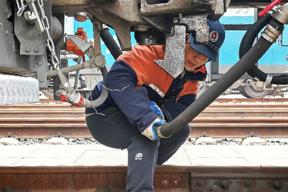 针对某新型电力机车试验的特殊运行路径、特殊连挂钩头,轨道车司机与调车组反复推敲调车作业方式、优化调车作业计划、压缩调车作业用时,以极致的责任心和专业度,攻克高密度试验行车并行、复杂工况叠加等多项难题,充分展现了试验中心职工敢打硬仗、善打胜仗的精神风貌。