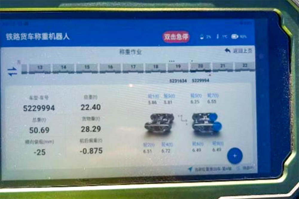 铁路货运装车后的超偏载检测,是保障行车安全的关键环节。以往人工使用轮重测定仪,需在站台狭小空间内逐轮操作,检测20节车厢常需5小时,效率受限,且存在一定安全风险。