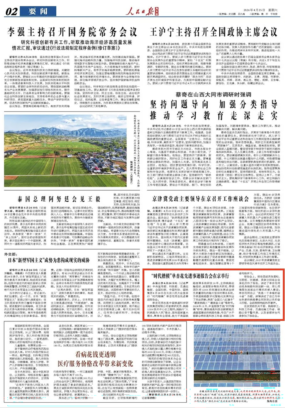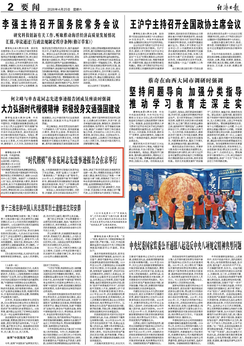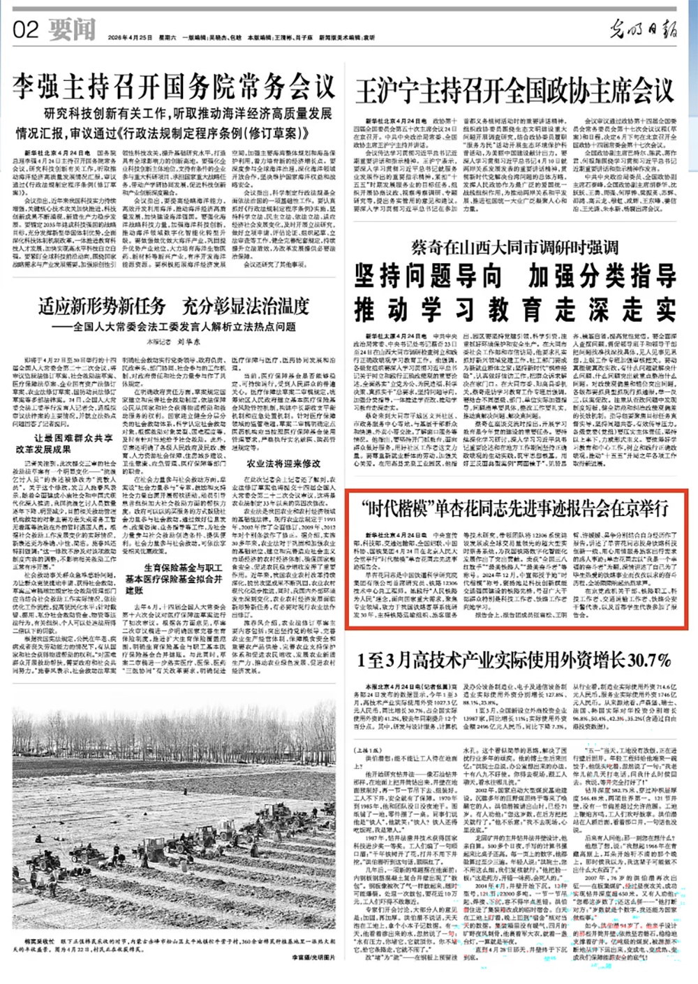 本报北京4月24日电(陈图南 崔轩豪 中青报·中青网记者 周伟)今天下午,“时代楷模”单杏花同志先进事迹报告会在北京人民大会堂举行。