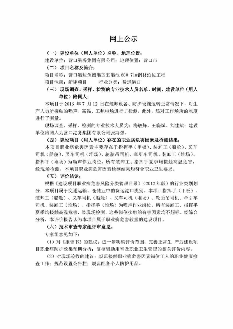 营口鲅鱼圈港区68#-71#钢材泊位工程职业病危害控制效果评价