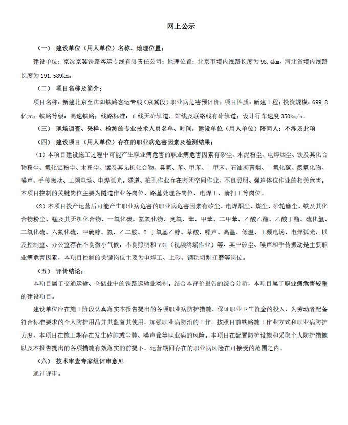 京沈客运专线(京冀段)项目职业病危害预评价