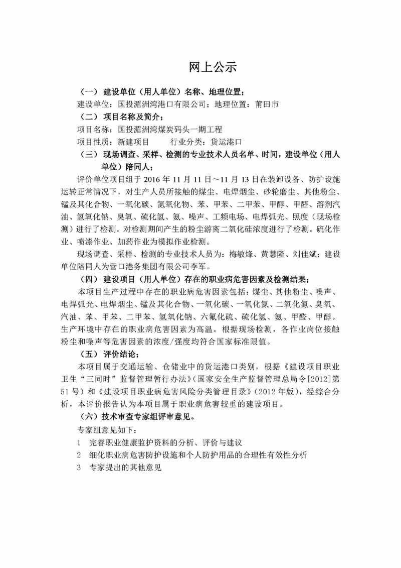 国投湄洲湾煤炭码头一期工程职业卫生控制效果评价