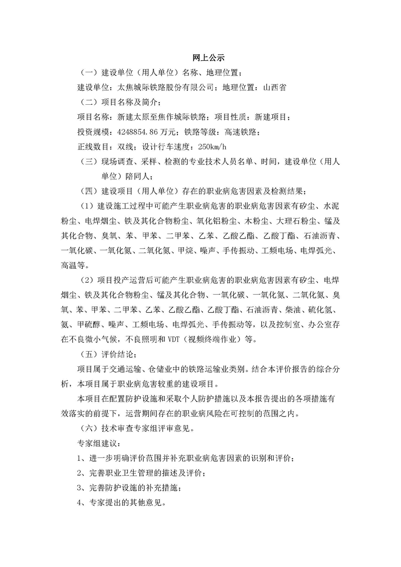新建太原至焦作铁路(山西段)职业病危害预评价